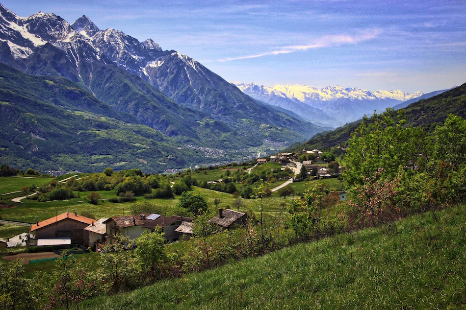 La Valle d’Aosta fa al caso nostro. Percorrendo il suo tratto intermedio, da Aosta a Châtillon, ci si renderà conto di come si può trovare, nel cuore della più aspra e elevata regione alpina, un paesaggio dai caratteri climatici quasi mediterranei: una lunga fascia valliva, che qui chiamano ancor’oggi ‘la Plaine’ (la pianura), percorsa dalla Dora Baltea, dove ai prati e ai campi si avvicendano floridi vigneti e estese macchie di castagneto, ma dove anche si dipana un corredo di ricchezze artistiche che vanno dal Medioevo al Rinascimento, il periodo d’oro della valle, manifestato soprattutto da chiese coi loro campanili romanici e da castelli che sono il ricordo delle trascorse vicende feudali