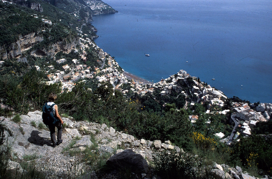 Le comunicazioni a piedi o a dorso di mulo nella Costiera amalfitana sono sempre state ostacolate dagli aspri rilievi dei Monti Lattari. Sul versante del Golfo di Salerno infatti, essi sprofondano nel mare con una parete quasi verticale. I villaggi sono appesi alle rocce, su esili terrazzini, e le vie che li raggiungono sono vere strade di pietra, fatte di migliaia di gradini, uno sopra l’altro, in un paesaggio di stupefacente bellezza. Questo itinerario inscrive un anello alle spalle dell’incantevole cittadina di Positano, seguendo le mulattiere che in passato servivano per comunicare via terra con il versante opposto, affacciato sul Golfo di Napoli.