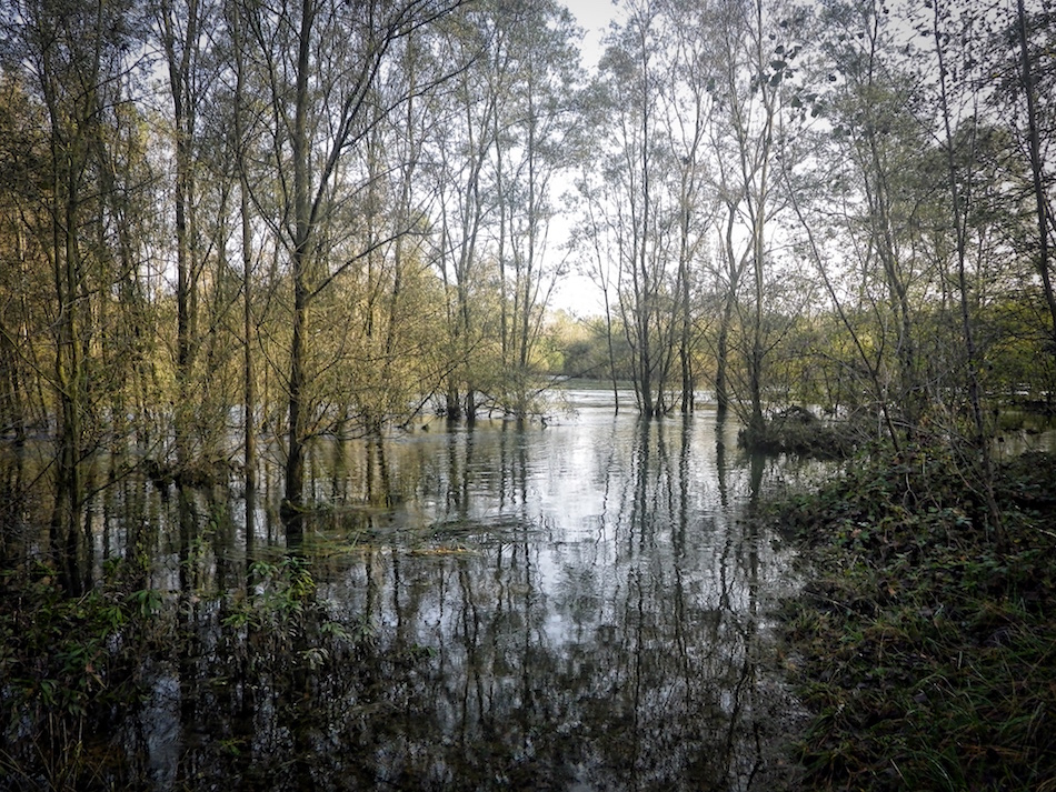 Subito dopo il ponte sullo Scavizzolo si piega a sinistra alternando il sentiero alla strada sterrata. Più avanti (km 16.5), dopo un secondo ponticello, si giunge a un bivio non segnalato: seguendo la traccia di sinistra ci si porta finalmente sul greto del Ticino (km 17.6), nel punto dove compie un’ampia curva. Dagli orizzonti scuri e limitati del bosco, può apparire improvvisa questa veduta d’orizzonte sul fiume e sul suo bianco greto.