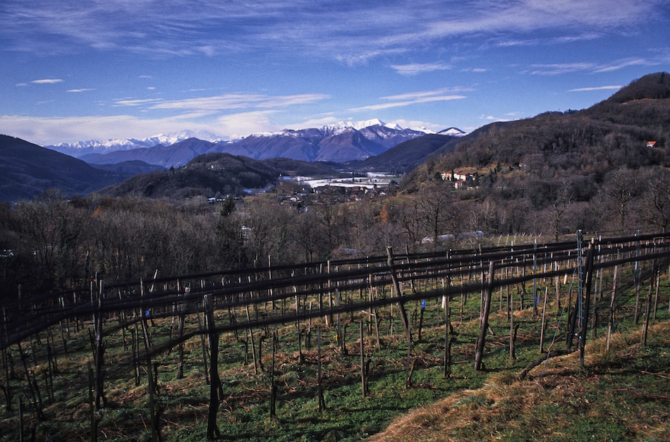 Una linea di confine, fra Italia e Svizzera, divide la valle del fiume Tresa, fra il Lago Maggiore e il Lago di Lugano. Il fondovalle è stretto, poco prima di Luino diventa quasi un canyon. Il fiume scava per trovare una via d’uscita nel suo tormentato percorso da ovest verso est. Il versante italiano è coperto dalla boscaglia e non più attraversato da sentieri, tanto è il tempo che fu lasciato all’abbandono. Quello svizzero ha il favore dell’esposizione a sud, una buona insolazione che permette la crescita della vite – il noto ‘merlot’ del Ticino – e di piante esotiche. Qui la pendice è rotta da ripiani, conche e vallette in una specie di simpatico disordine geomorfologico che arricchisce di vedute il paesaggio. L’insediamento vi fu favorito, accogliendo paesi sopra i poggi, affacciati al sole. Insomma il posto giusto per apprezzare le delizie delle Prealpi. Un bel sentiero denominato ‘Tracce d’uomo’, rimarca il felice connubio fra uomo e natura, fatto di modi e usi della tradizione contadina: la ghiacciaia, il roccolo, le fontane, il castagneto da frutto, la vigna ecc. Tracce d’uomo è un mezzo simpatico per conoscere questa dimensione rustica che diventa valore aggiunto del paesaggio.
