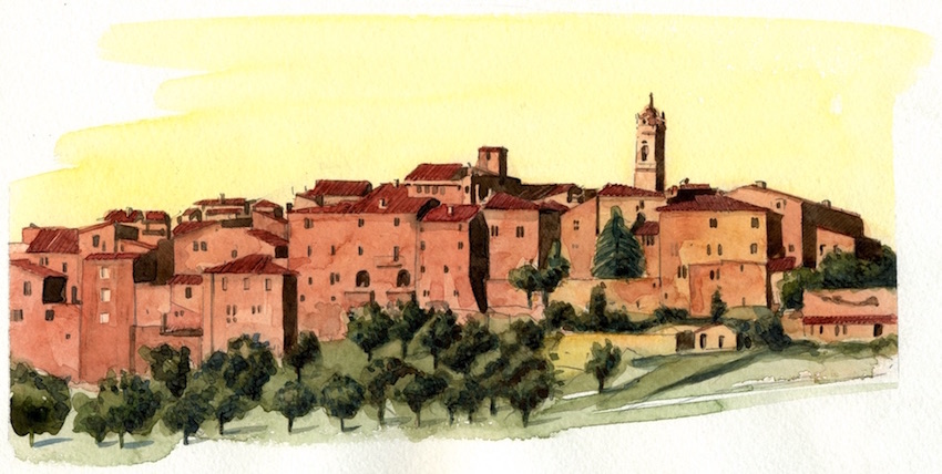 Le brune groppe arate dei campi, dentro cui si piantano, come spilli, ciuffi di cipressi, le lunghe fessure dei calanchi, i boschi di macchia, le vigne e gli ulivi, i casali della mezzadria, le torri arcigne e i centri storici che riposano dentro le loro alte mura. Ecco l’immagine più cara di questa terra, fatta apposta per la contemplazione a ‘passo lento’.
