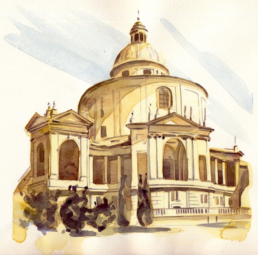 Carlo Francesco Dotti, quando progettò il santuario di S.Luca, lo volle in posizione tale da essere visibile a grande distanza: un alto basamento su cui impostare un corpo centrale e una grande cupola sommitale ellittica.