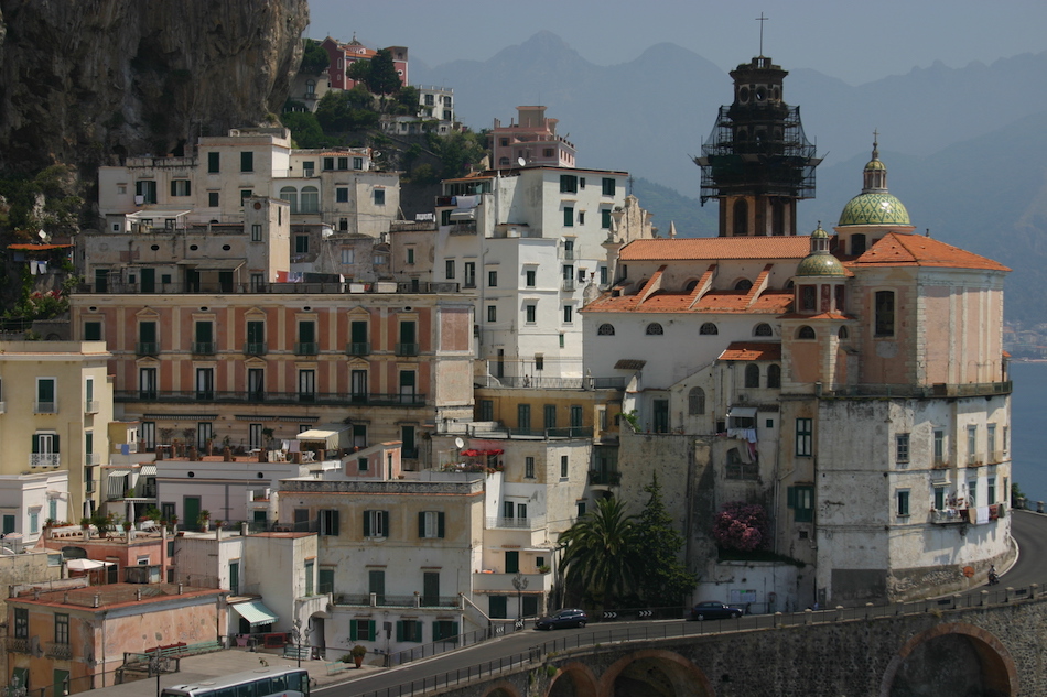 B. La piazza Umberto I è il centro del piccolo abitato di Atrani. Vi si affaccia la chiesuola di S. Salvatore de Birecto: vi venivano eletti i rappresentanti della Repubblica Amalfitana. Attraversato questo splendido andito, separato dal mare da una cortina di case, si sale, sempre per vie interne, alla chiesa di S. Maria Maddalena, sulla punta orientale della baia di Atrani.