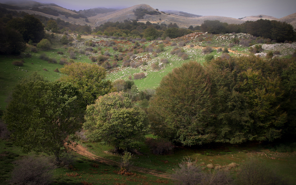 che non lasciano filtrare la luce. Questo spazio ombroso veniva usato dai pastori per riparare il bestìame dal cocente sole estivo. Il sentiero prosegue, ora con una una pendenza più sentita, verso il soprastante Cozzo Luminano. L’area è cintata per consentire la ricrescita del bosco ceduo di rovere e faggio. Alcuni begli esemplari danno tono e vigore al paesaggio.