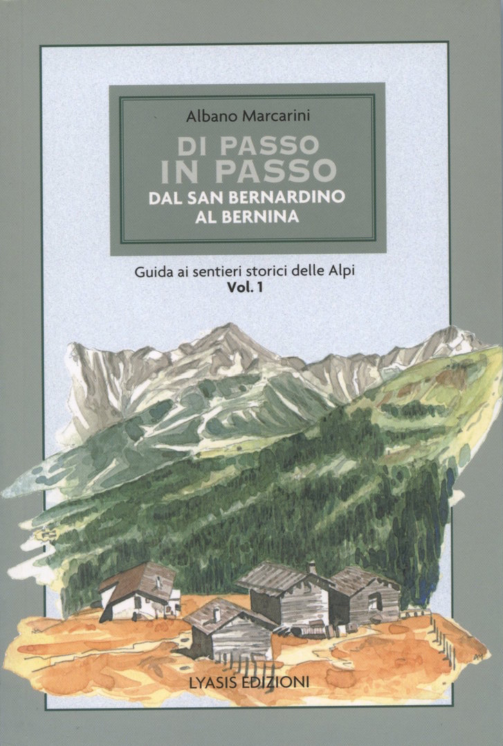 Albano Marcarini, DI PASSO IN PASSO – Dal S.Bernardino al Bernina, Lyasis, 2006, pag. 248 a colori con carte, foto, acquerelli.