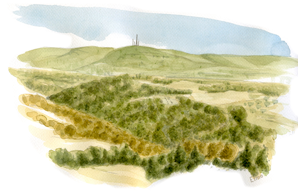 La nostra escursione parte da un mulino di cui si scorgono a fatica, nella vegetazione, tre bacini di raccolta delle acque e un brano di muratura. Resta impresso nella toponomastica come Mulino del Fruga. Complicato arrivarci in auto, ma indica la partenza del sentiero 805, l’Anello dell’Elmo e di Melonta. Siamo alle falde del Monte Peglia (alt. 837), con le sue torreggianti antenne di telecomunicazione. Con l’attigua Selva di Meana e il Parco vulcanologico di San Venanzo forma la più estesa area naturale protetta dell’Orvietano: 4649 ettari.