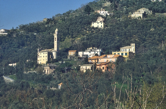 Alternando brevi tratti su asfalto e altri invece sul vecchio percorso gradonato si guadagna quota. La visuale s’allarga sulla foce dell’Entella, su Chiavari e Lavagna, sul golfo del Tigullio.