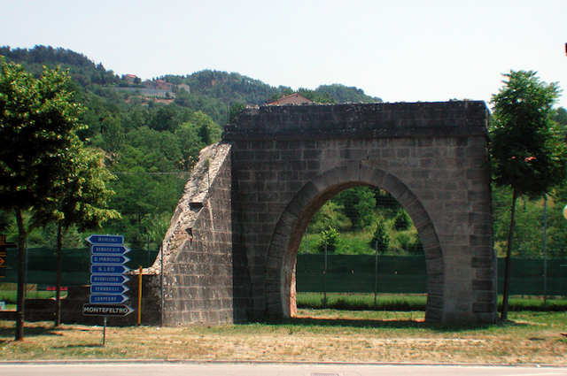 Ora si tratta di uscire dalla città e imboccare la ciclabile del Marecchia. Dalla centralissima piazza Tre Martiri si impegna il rettifilo corso di Augusto, segno inequivocabile della fondazione romana della città e si arriva, appena fuori dalla cerchia delle mura malatestiane, al poderoso Ponte di Tiberio