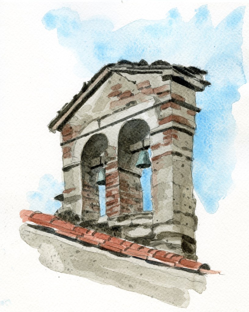 Poco dopo la diramazione per Larniano s’incontra un’altra biforcazione. Qui si abbandona la rotabile asfaltata e si imbocca a sinistra una strada sterrata segnalata da diverse indicazioni di isolate località. La strada sale di qualche metro per superare la china di Colle al Vento, fra uliveti e campi di grano. Quindi scende il versante del vallone del Fosso Roille rientrando nella querceta. Quando la strada porta all’ingresso della proprietà privata del Belvedere, la si lascia e si tende a destra notando un proseguimento, più stretto, e pavimentato in cemento. Dapprima si sale di qualche metro poi ci s’infossa nell’ombrosa e umida valle del Campitello, fra un’esuberante vegetazione che fa da cupola al cammino, incontrando isolate e dirute abitazioni. Si entra infine in un’area di esbosco dove diversi tracciati possono confondere: si consiglia di seguire la traccia più battuta che inizia a perdere quota per arrivare al lembo dei coltivi presso il Casale Bavacciano (alt. 447) con un rustico campo di bocce protetto da un pergolato di vigna. Si continua al margine fra bosco e campi, oltrepassando un cancellino, per raggiungere, lungo il sentiero, l’abbandonata chiesuola di San Torello, un santo ‘contadino’ che condivideva con i boscaioli e i pastori una vita di fede e continenza.