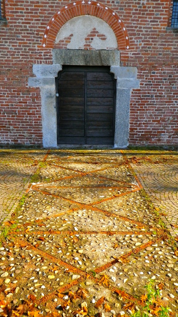 La ciclabile corre accanto alla nuova strada per Cusago; non proprio attaccata, ricalca il vecchio tracciato. Finisce però male al rondò di Monzoro (km 6.6, alt. 124, 4), al confine con il comune di Cusago, dove bisogna usare prudenza, sfidare il traffico e passare al di là della carreggiata, dove riprende la pista. Accanto, all’inizio della strada per S. Pietro all’Olmo, si nota la bassa facciata di una chiesa, annessa a un cascinale. Deve essere antica, molto antica. Si tratta della chiesa S. Maria Rossa, un tempo annessa a un’abbazia fondata nel 1359 dal Generale dell’Ordine degli Olivetani Ippolito da Milano e rifatta nel sec. XV conservando le linee gotiche.