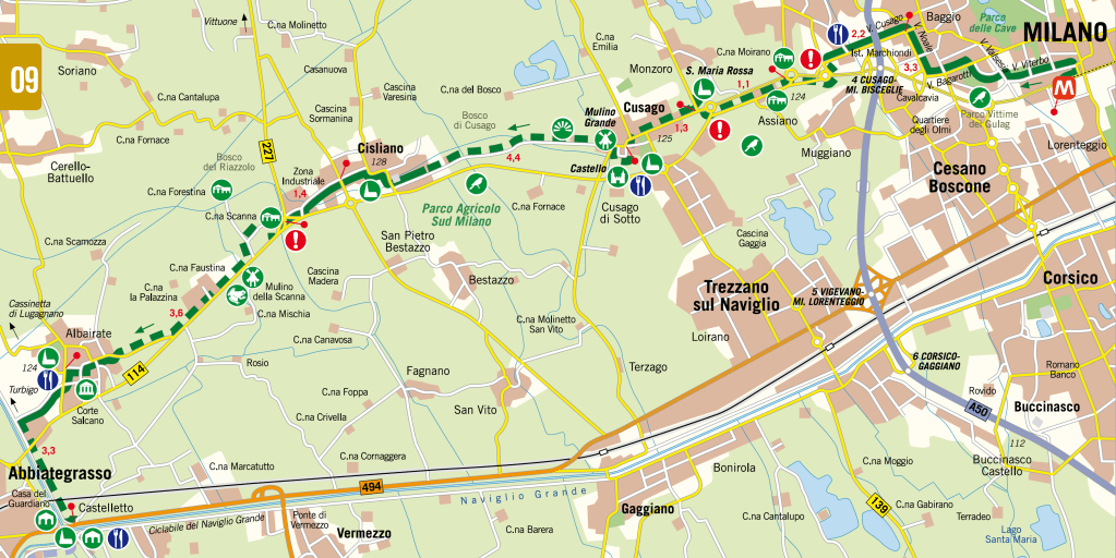 Itinerario lineare a ovest di Milano, in direzione di Abbiategrasso e del Parco del Ticino.