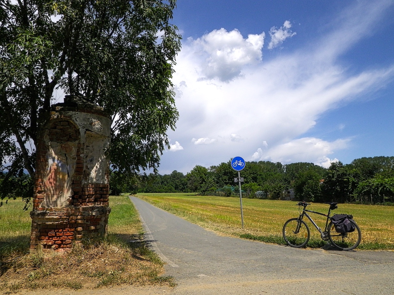 Itinerario ciclabile lineare nel Canavese, nella provincia di Torino, su strade secondarie di ripa fluviale e tratti di pista ciclabile.
