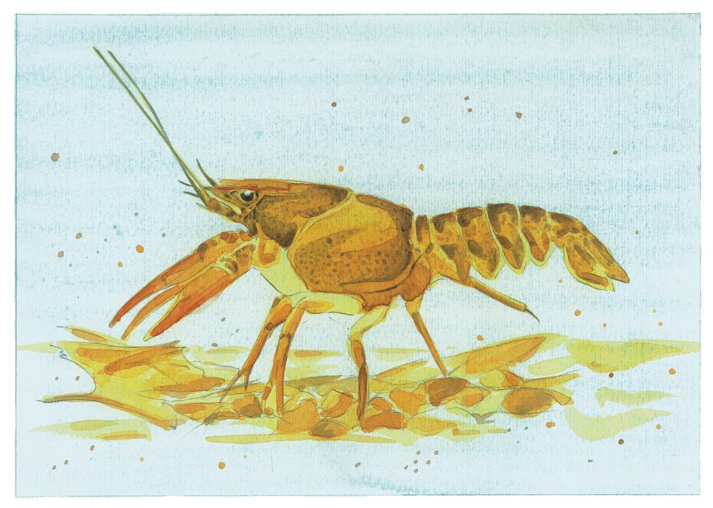 Il gambero d’acqua dolce (Austropotamobius pallipes) ha il corpo rivestito da uno scheletro esterno rigido con colori variabile dal grigio-verde al bruno scuro. Durante la crescita il crostaceo sostituisce periodicamente la vecchia corazza con una nuova. Il suo corpo è diviso in due: il cefalotorace ha un paio di chele usate per difendersi e accoppiarsi e quattro paia di zampette per camminare in avanti; e l’addome, che termina con un’appendice in forma di paletta con la quale il gambero nuota e si muove all’indietro. Si riproduce una sola volta all’anno, in autunno, quando il maschio, della dimensione di 60-70 mm depone le spermatofore sotto il cefalotorace della femmina. Questa, dopo una settimana, emette le uova (da 50 a 200), fecondate all’esterno e appese alle appendici addominali fino alla schiusa che avviene in tarda primavera. Le larve, già simili agli adulti, restano attaccate alla madre ancora per diversi giorni prima di vivere autonomamente. Un bel peso da sopportare! Il gambero di fiume è un animale delicato e per questo protetto. Soffre molto gli sbalzi termici e la cattiva qualità delle acque. Per questa ragione la sua popolazione si è molto ridotta e sono in atto diversi interventi per il suo ripopolamento che dipende, ovviamente, anche dal ristabilimento di un habitat ideale.