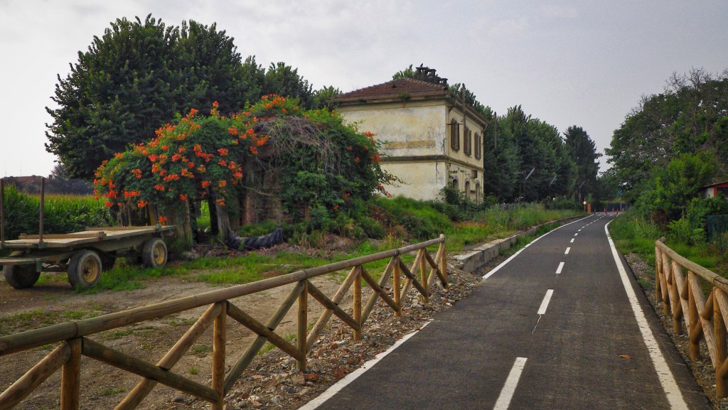 Itinerario in bicicletta sulla ex-ferrovia Airasca-Saluzzo.