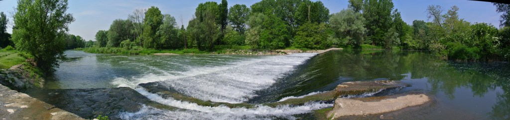 LA PALATA MENASCIUTTO. Con ‘palata’ s’intende uno sbarramento posto di traverso al fiume: ha lo scopo di deviare parte delle acque per alimentare cavi irrigui. All’intorno prolifera un’oasi di natura dove è concesso entrare solo a piedi: in bici si potrebbe calpestare qualche ranocchio o i bei ramarri che si attardano al sole. Uno degli ospiti più ambiti della riserva è la rana di Lataste, una rara rana rossa endemica della pianura padana. Allora ci si può inoltrare seguendo una lanca, ovvero un ramo abbandonato del fiume di forma arcuata. L’assenza di acqua viva ha prodotto uno stagno dove prolifera la vita biologica. Innumerevoli le piante acquatiche come le brasche, il millefoglio comune e la lenticchia d’acqua. Si giunge sulla sponda del Serio presso la Palata Menasciutto, oggi cementata ma in origine composta da palconcelli in legno. Devia parte delle acque del Serio verso le campagne della sponda sinistra. Il salto d’acqua di circa 4 metri che si genera produce un notevole effetto, specie quando la portata del fiume è consistente.