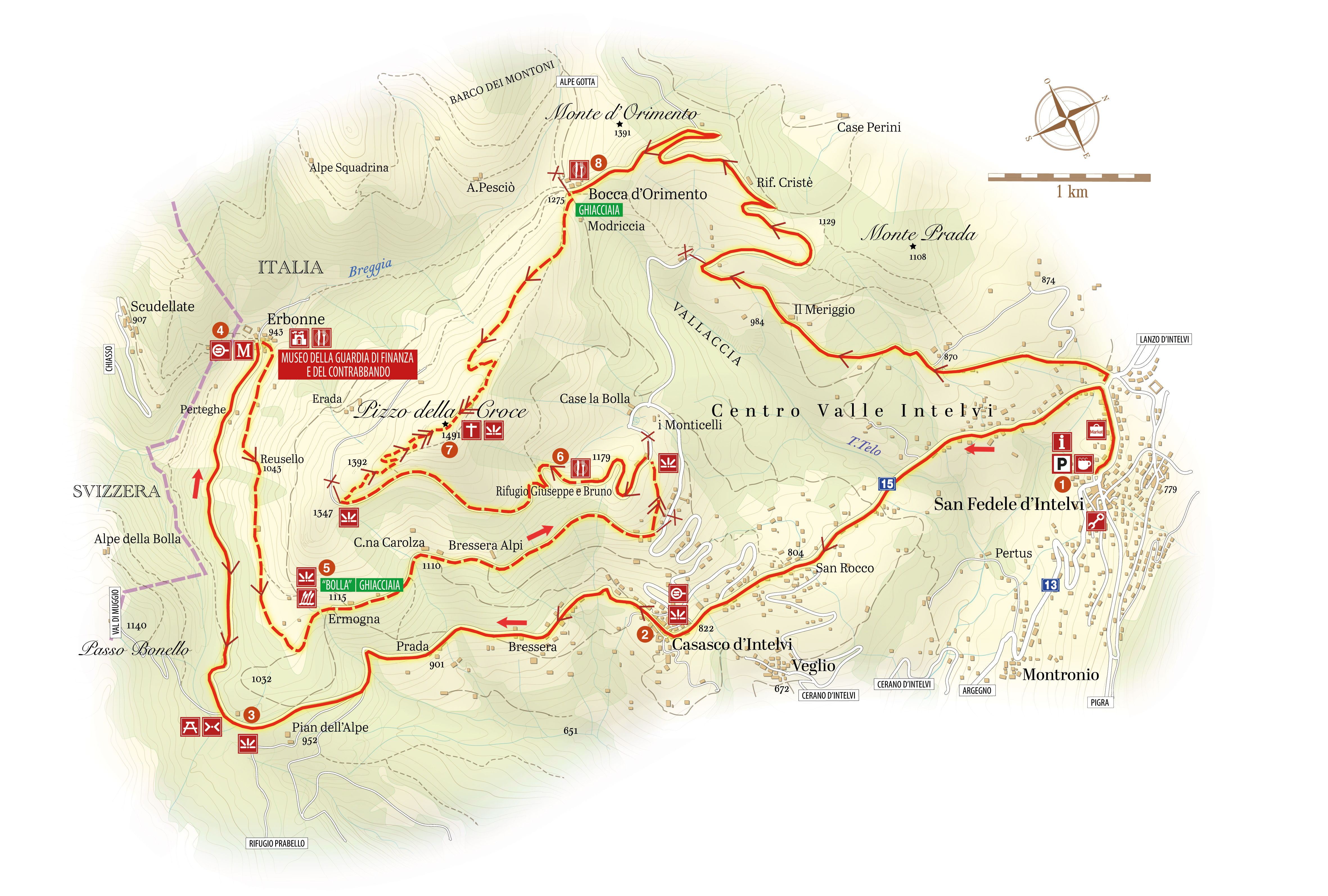 Partenza e arrivo: San Fedele d’Intelvi. Si raggiunge da Como utilizzando la strada statale 340 ‘Regina’ fino ad Argegno, quindi la Sp 13.